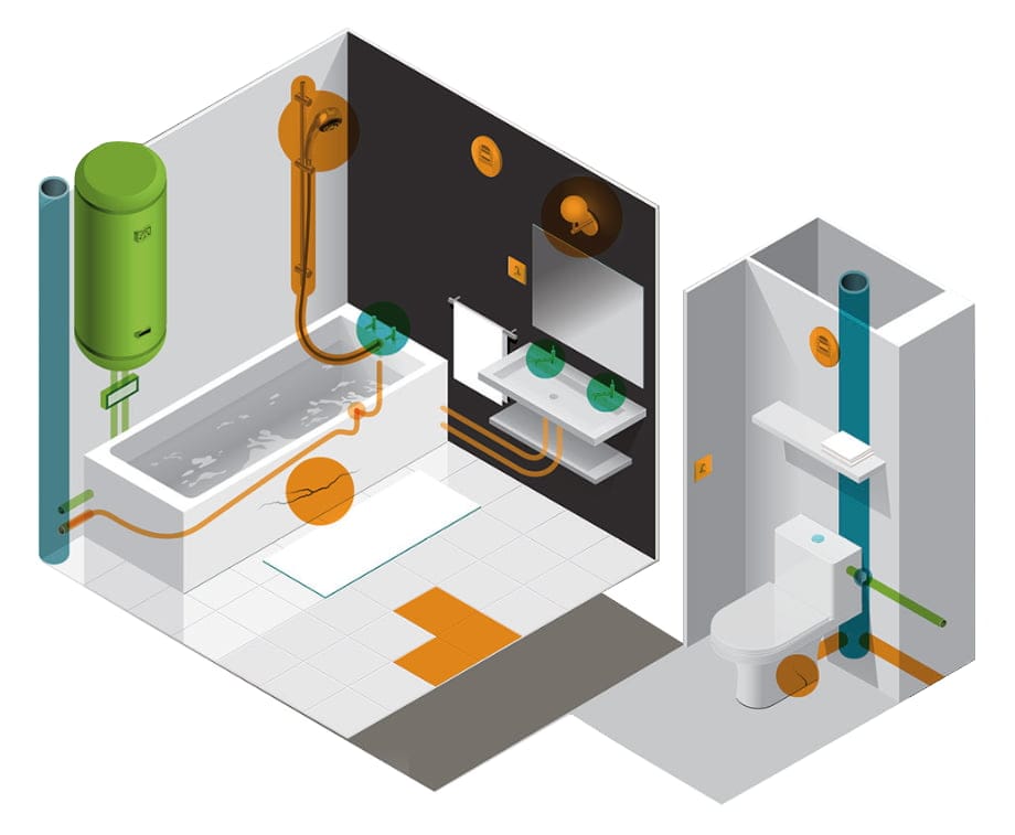 Pièces d'eau (salle de bain, sanitaires, cuisine)